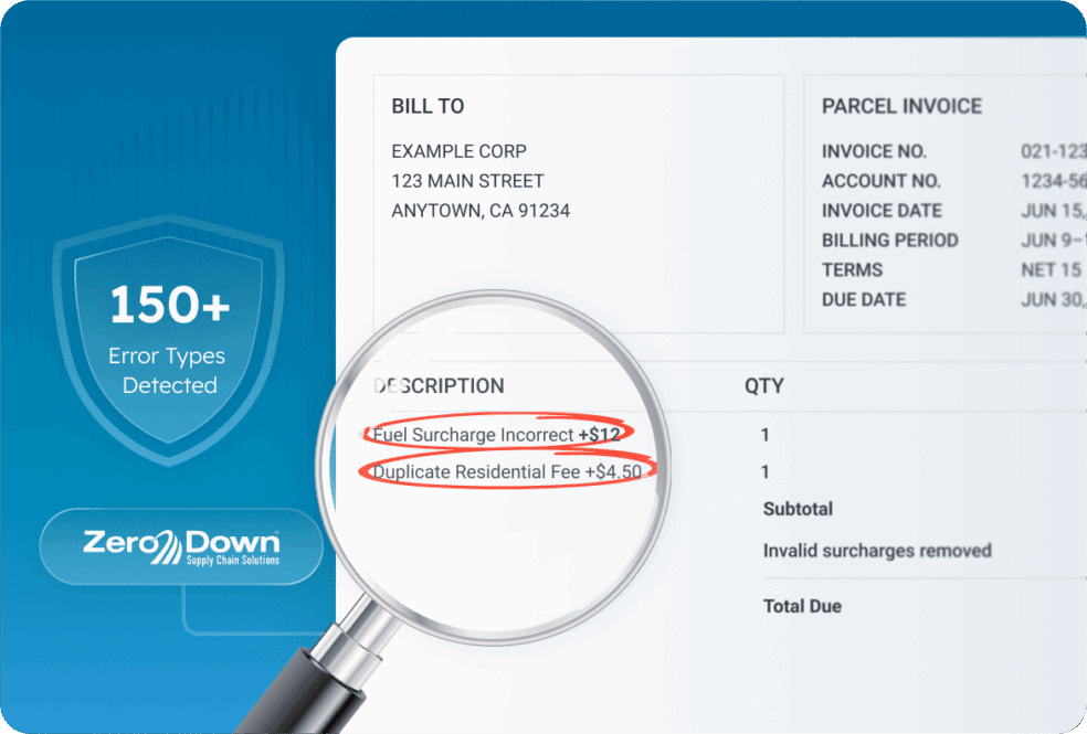 Unlike manual or post-payment audits, Zero Down uses a multi-point, automated pre- and post-payment audit that catches over 150 potential error types before invoices are paid. Traditional providers often rely on limited checks or delayed recovery, while our platform integrates directly with your ERP/TMS for real-time visibility and immediate savings.